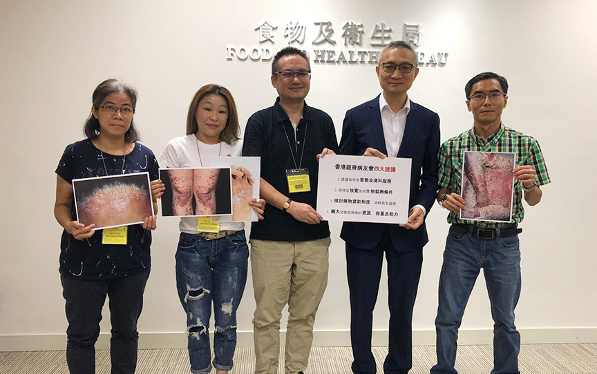 我們在2013年成立香港銀屑病友會,2018年有份推動衞生署和醫管局東區尤德夫人那打素醫院合營生物製劑專科門診,目前約有60人受惠,但全港約有四萬個銀屑病病人,希望政府能夠加快步伐,在不同地區設立診所。